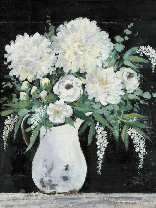Blush Flowers in a Jug White Modern Wood Framed Art Print with Double Matting by Vassileva, Silvia