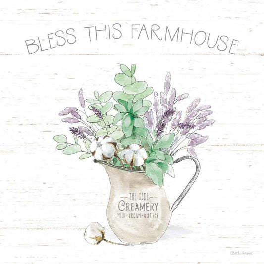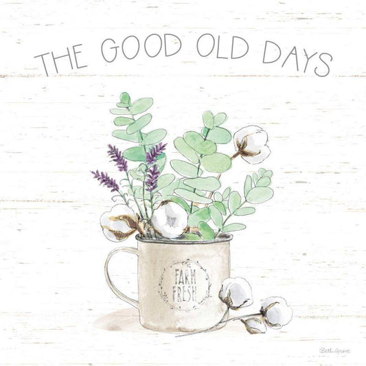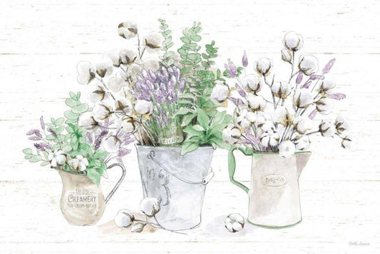 Farmhouse Cotton I Sage White Modern Wood Framed Art Print with Double Matting by Grove, Beth