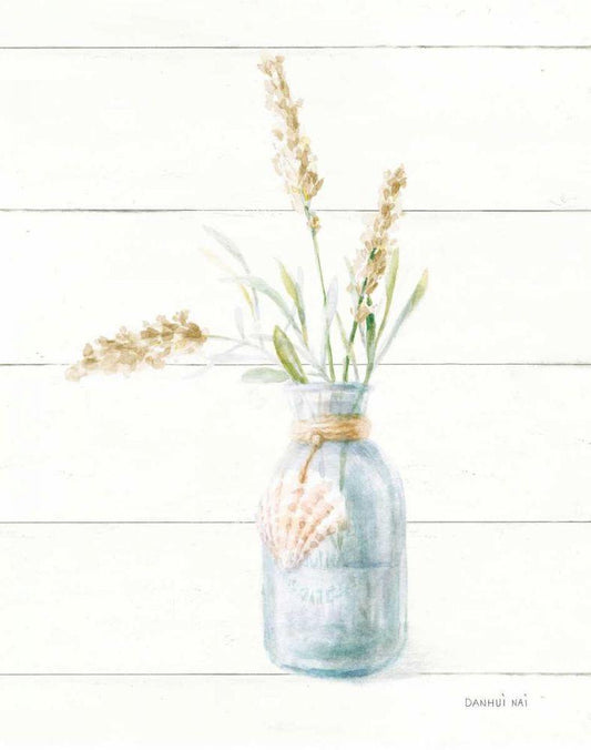 Beach Flowers III Neutral White Modern Wood Framed Art Print with Double Matting by Nai, Danhui