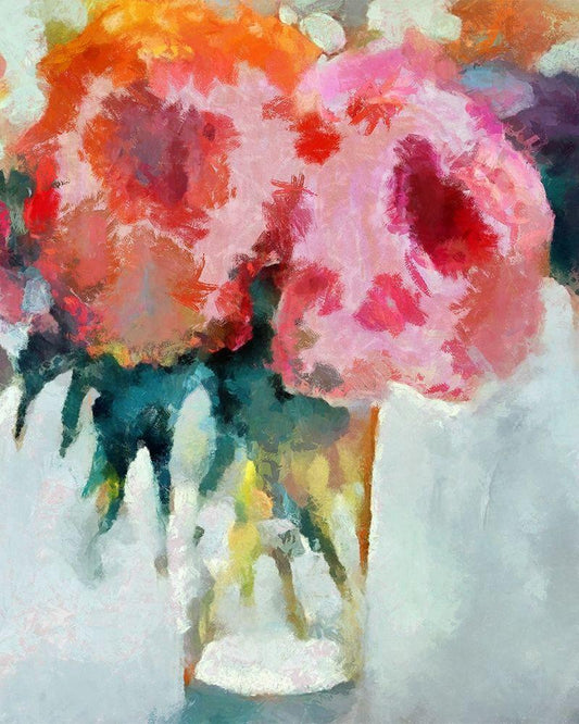 Glass Of Pink Flowers White Modern Wood Framed Art Print with Double Matting by Bolokofsky, Ronald