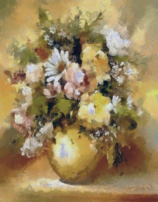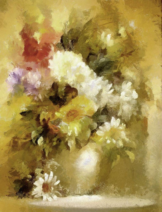 Golden Bouquet I White Modern Wood Framed Art Print with Double Matting by Bolokofsky, Ronald
