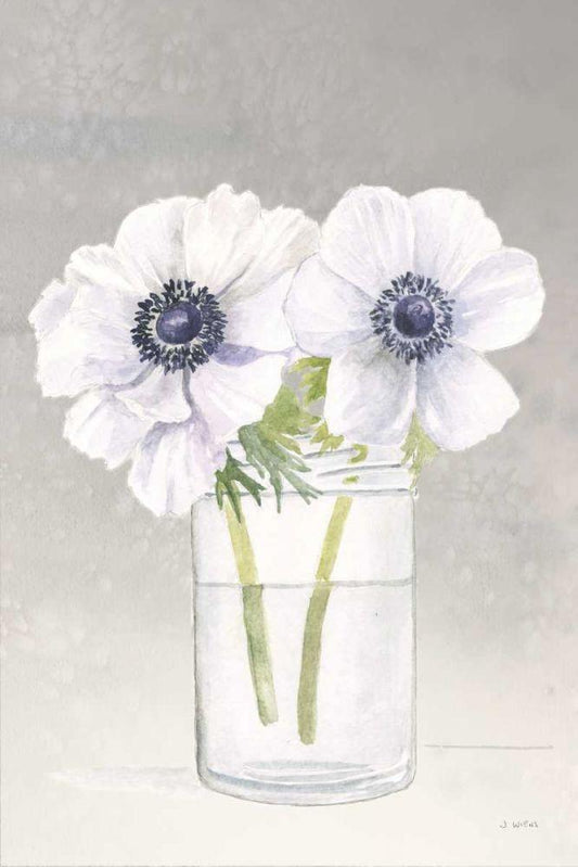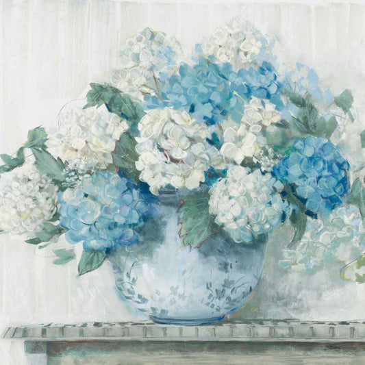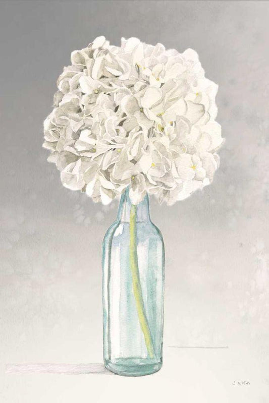 Hydrangeas in Glass Jar Pastel Crop White Modern Wood Framed Art Print with Double Matting by Rowan, Carol