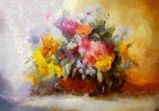 Basket of Flowers I White Modern Wood Framed Art Print with Double Matting by Bolokofsky, Ronald
