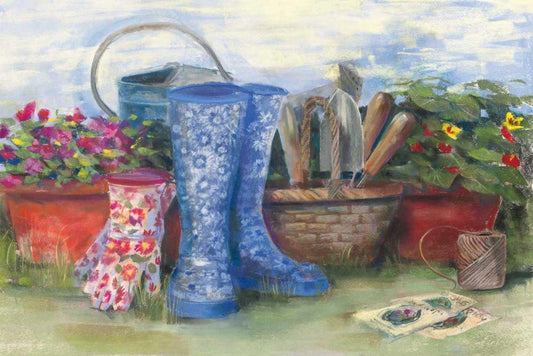 Gardeners Still Life with Boots White Modern Wood Framed Art Print with Double Matting by Rowan, Carol