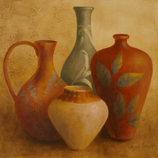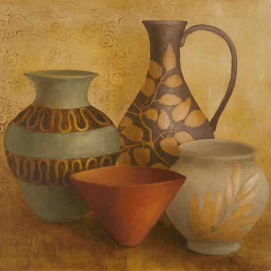 Decorative Beige Vessels I White Modern Wood Framed Art Print with Double Matting by Loreth, Lanie