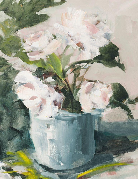 Peonies in Blue Vase White Modern Wood Framed Art Print with Double Matting by Slivka, Jane
