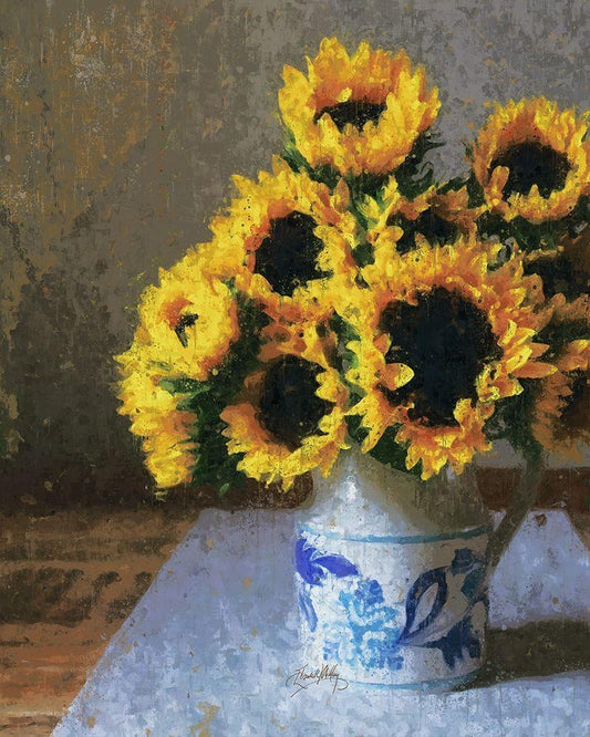 Sunflowers in Pitcher White Modern Wood Framed Art Print with Double Matting by Medley, Elizabeth