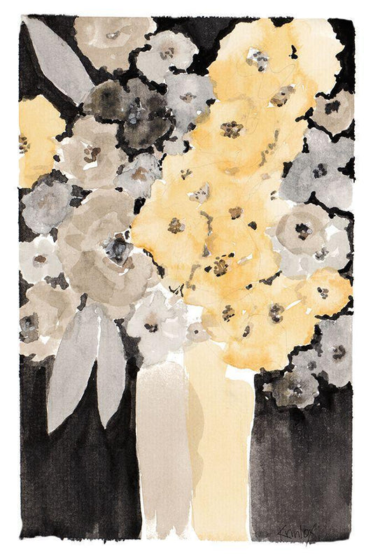 Moody Bouquet White Modern Wood Framed Art Print with Double Matting by Krinlox