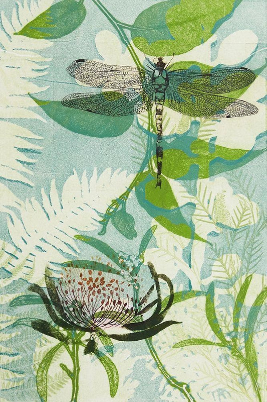 The Elusive Dragonfly and Waratah White Modern Wood Framed Art Print with Double Matting by Rice, Trudy