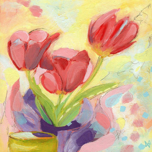 Tulips No. 3 White Modern Wood Framed Art Print with Double Matting by Nemcosky, Ann Thompson