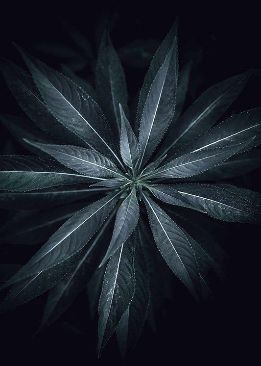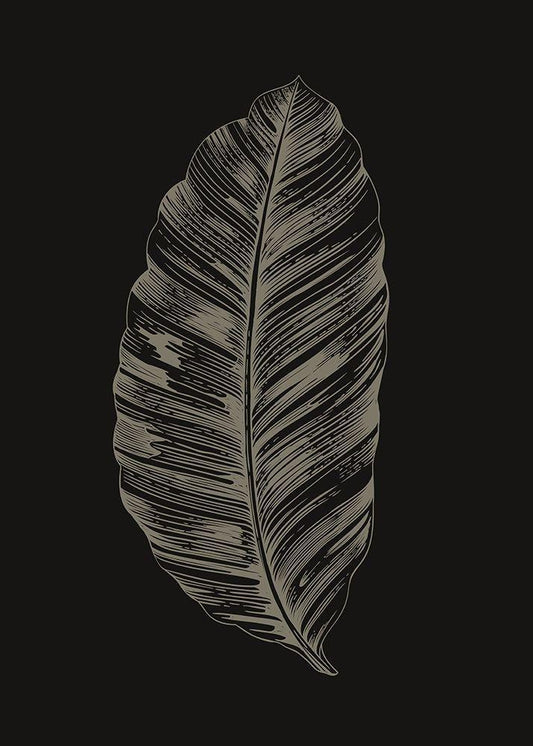 Black Leaf White Modern Wood Framed Art Print with Double Matting by Design Fabrikken