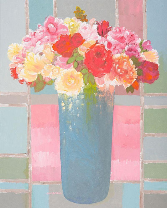 Flowers in a Blue Vase White Modern Wood Framed Art Print with Double Matting by Khorasani, Hooshang