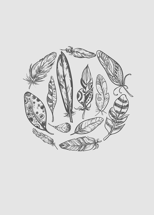 Feather Circle White Modern Wood Framed Art Print with Double Matting by Incado