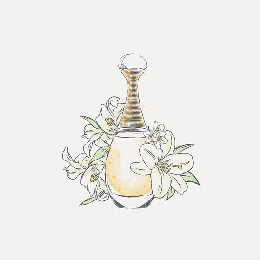 Perfume I White Modern Wood Framed Art Print with Double Matting by Incado