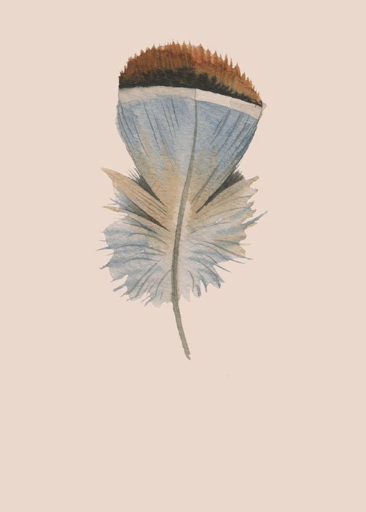 Feather 02 White Modern Wood Framed Art Print with Double Matting by Incado