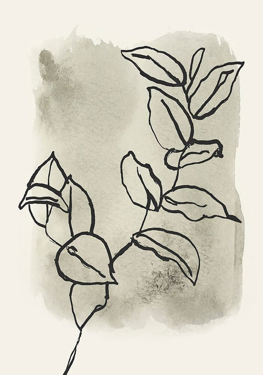 Branch Sketch White Modern Wood Framed Art Print with Double Matting by Incado