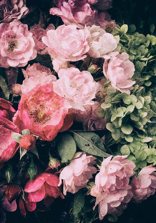 Dark Floral Arrangement White Modern Wood Framed Art Print with Double Matting by Incado