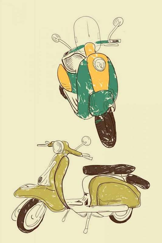Scooter I White Modern Wood Framed Art Print with Double Matting by GraphINC