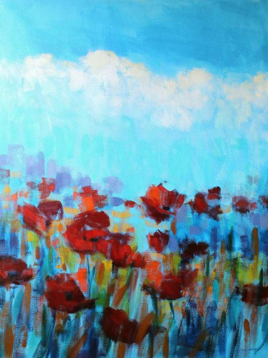 Poppy Walk White Modern Wood Framed Art Print with Double Matting by Hardy, Claire