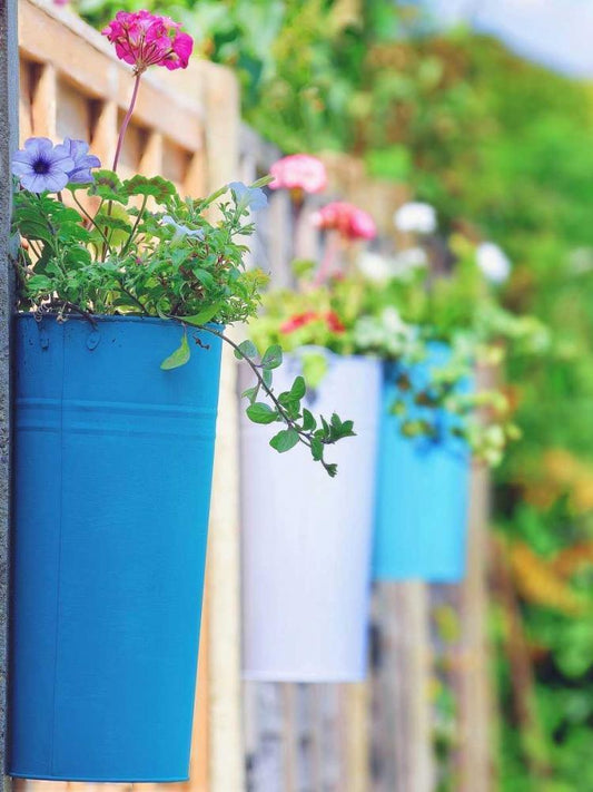 The Colored Pots White Modern Wood Framed Art Print with Double Matting by Goncalves, Adelino