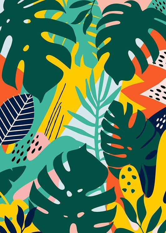Tropical Leaves One White Modern Wood Framed Art Print with Double Matting by Ayse