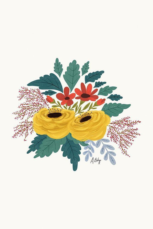 Happy Flowers White Modern Wood Framed Art Print with Double Matting by Annie Bailey Art