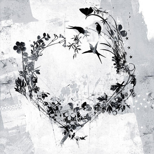 Floral Heart White Modern Wood Framed Art Print with Double Matting by Albers, Teis
