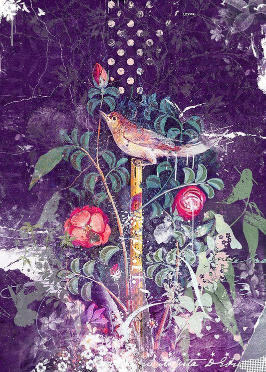 Bird Silhouette White Modern Wood Framed Art Print with Double Matting by Albers, Teis