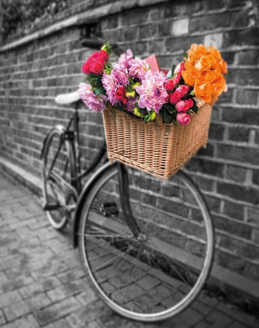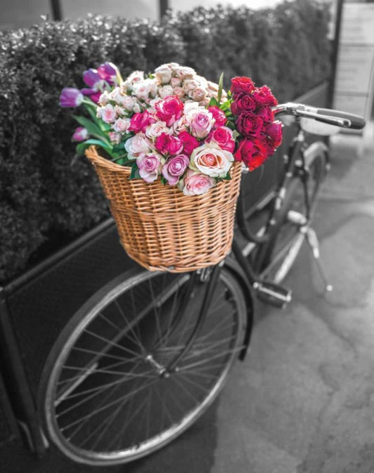 Basket of Flowers I White Modern Wood Framed Art Print with Double Matting by Frank, Assaf