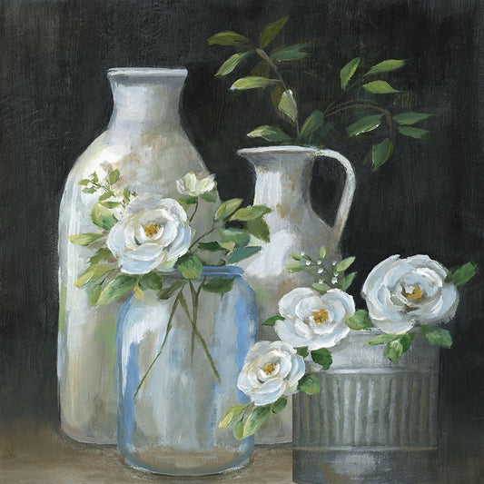 Milk Glass Arrangement I White Modern Wood Framed Art Print with Double Matting by Dunlap, Marilyn