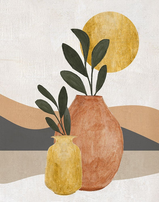 Boho Arrangement II White Modern Wood Framed Art Print with Double Matting by Tava Studios