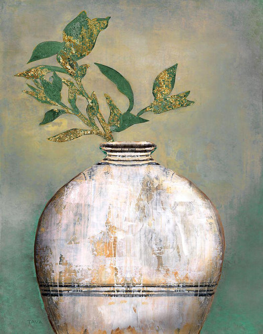 Golden Urn II White Modern Wood Framed Art Print with Double Matting by Tava Studios