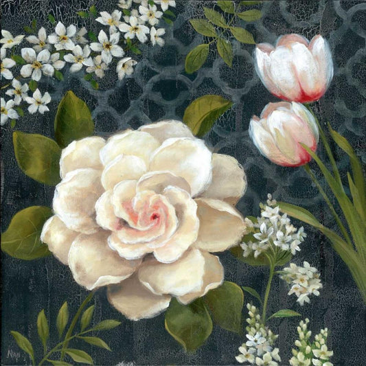 Midnight Garden I White Modern Wood Framed Art Print with Double Matting by Nan