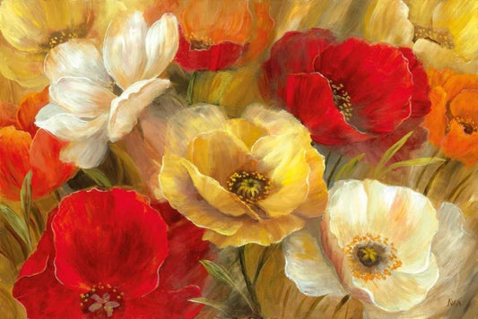 Vibrant Bouquet I White Modern Wood Framed Art Print with Double Matting by Robinson, Carol