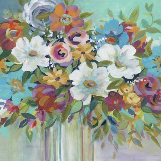 Vibrant Bouquet II White Modern Wood Framed Art Print with Double Matting by Robinson, Carol