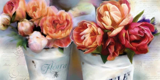 Fleurs de Paris White Modern Wood Framed Art Print with Double Matting by Nan