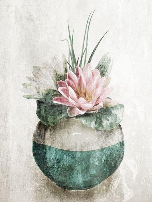 Water Lilly In Vase White Modern Wood Framed Art Print with Double Matting by OnRei