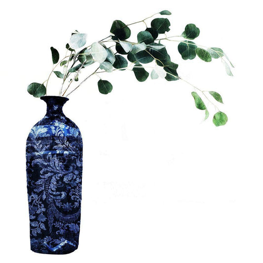 China Vase With Floral Mate White Modern Wood Framed Art Print with Double Matting by OnRei