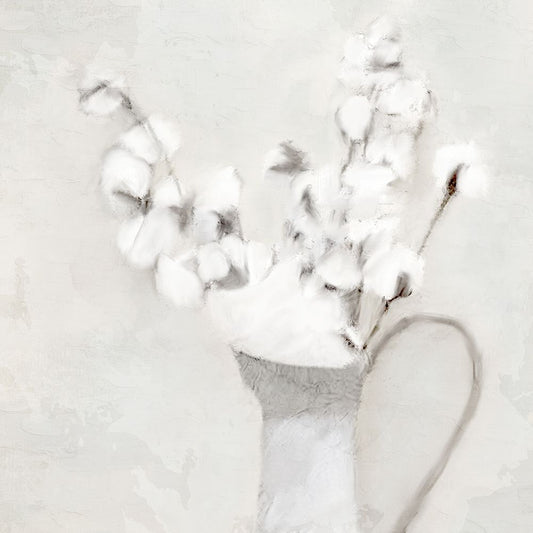 Vase Of Cotton White Modern Wood Framed Art Print with Double Matting by Allen, Kimberly