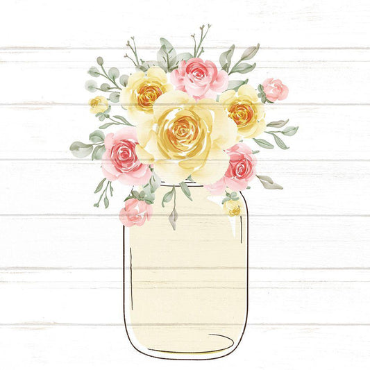 Mason Jar Floral 12 White Modern Wood Framed Art Print with Double Matting by Allen, Kimberly