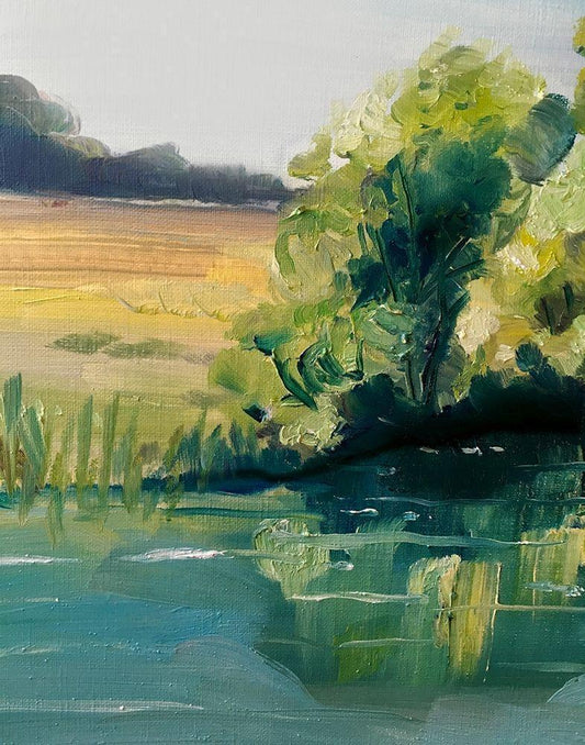 Landscape Along a River White Modern Wood Framed Art Print with Double Matting by Boho Hue Studio