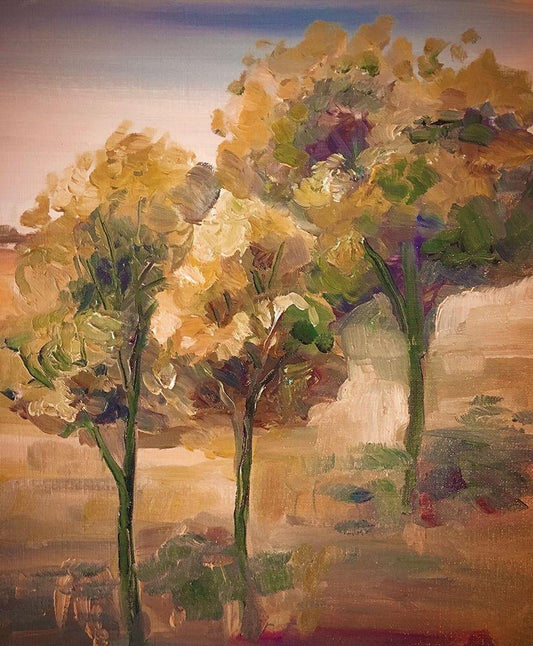Golden Pageant Trees White Modern Wood Framed Art Print with Double Matting by Boho Hue Studio