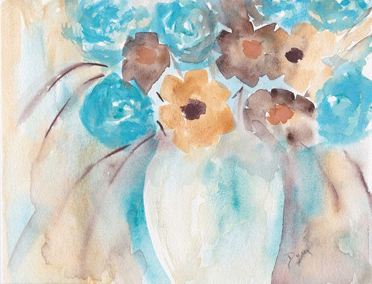 Teal Brown Garden Bouquet White Modern Wood Framed Art Print with Double Matting by Dyer, Beverly