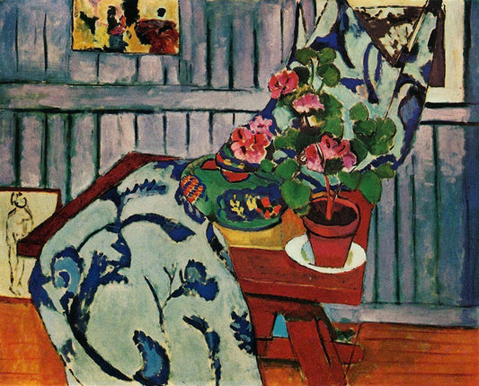 matisse_still_life_witha_geranium White Modern Wood Framed Art Print with Double Matting by Vintage Apple Collection