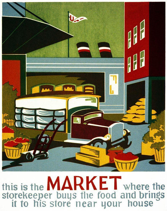 Market White Modern Wood Framed Art Print with Double Matting by Vintage Apple Collection