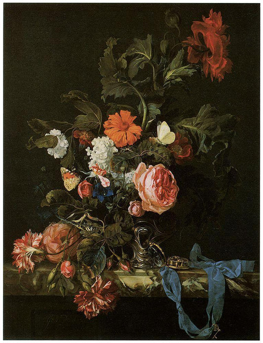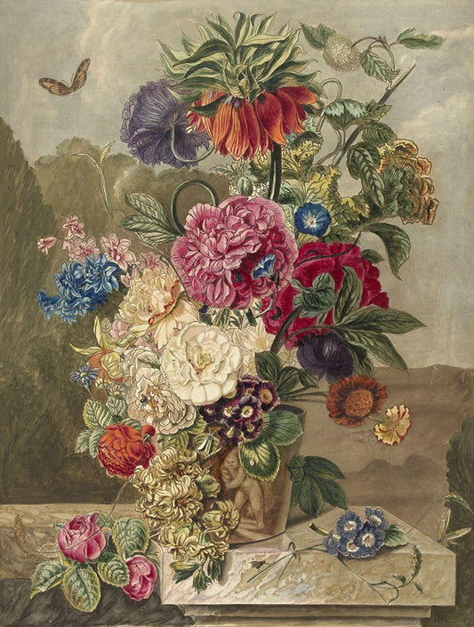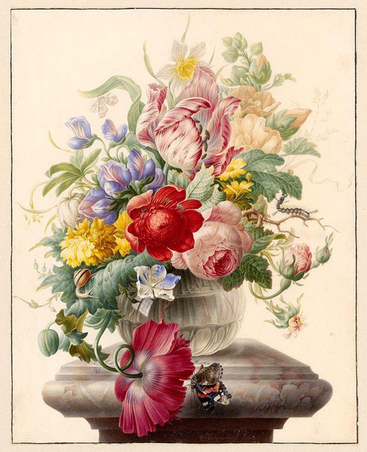 Bouquet White Modern Wood Framed Art Print with Double Matting by Vintage Apple Collection