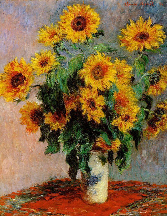 Monet-Bouquet of Sunflowers White Modern Wood Framed Art Print with Double Matting by Vintage Apple Collection