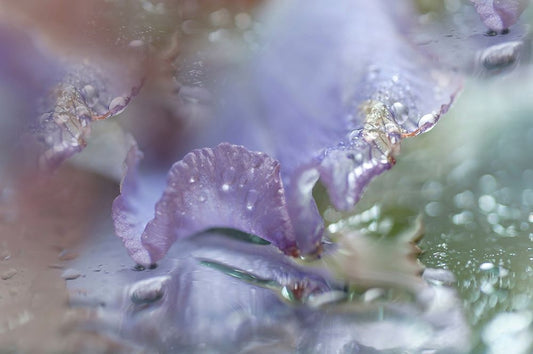 Morning Diamonds Iris Macro 1 White Modern Wood Framed Art Print with Double Matting by Jenny Rainbow Fine Art