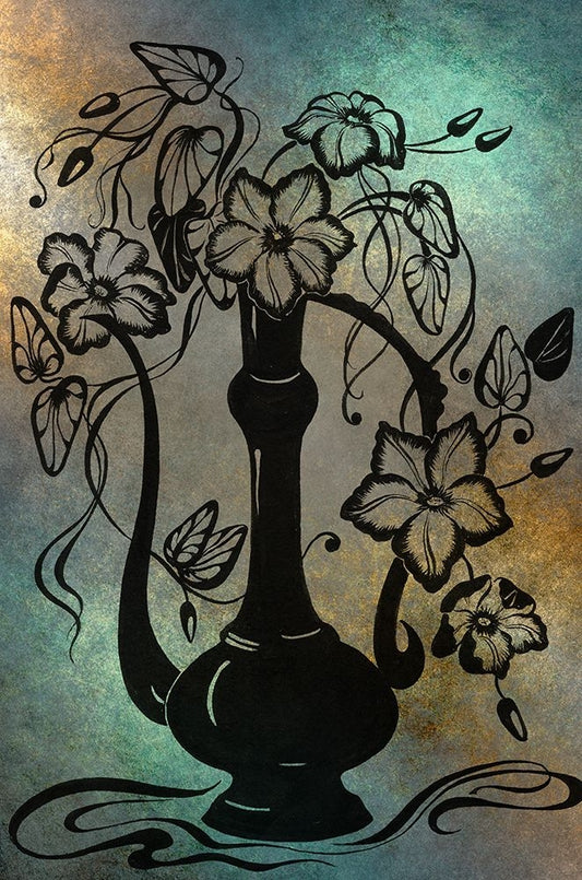 Ink Drawing Clematises in Indian Pitcher White Modern Wood Framed Art Print with Double Matting by Jenny Rainbow Fine Art