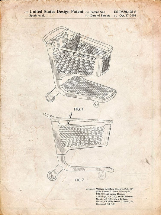 PP693-Vintage Parchment Target Shopping Cart Patent Poster White Modern Wood Framed Art Print with Double Matting by Borders, Cole